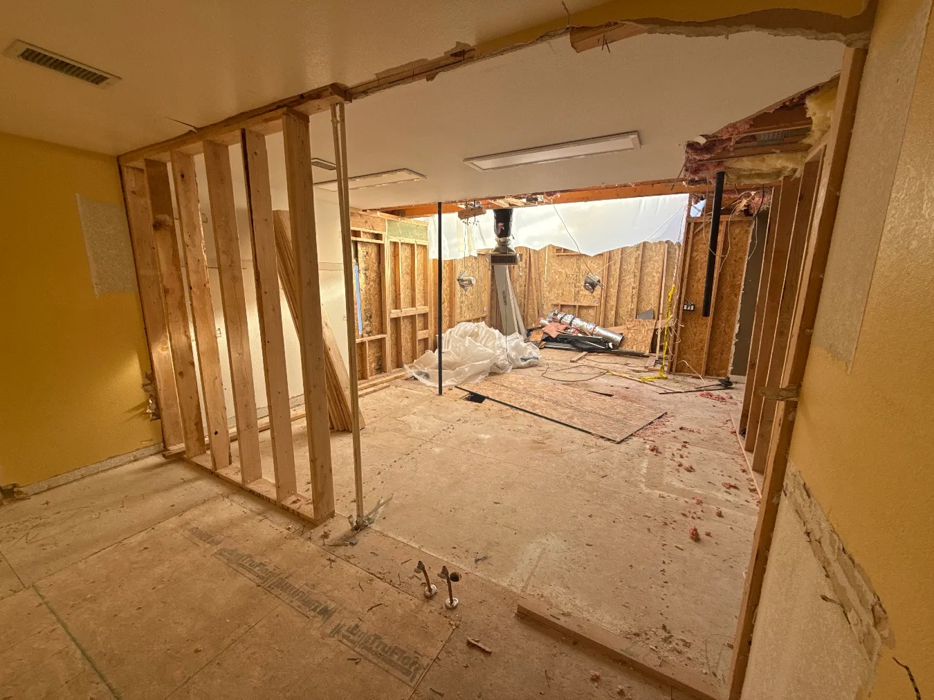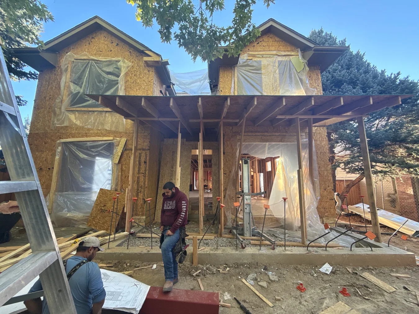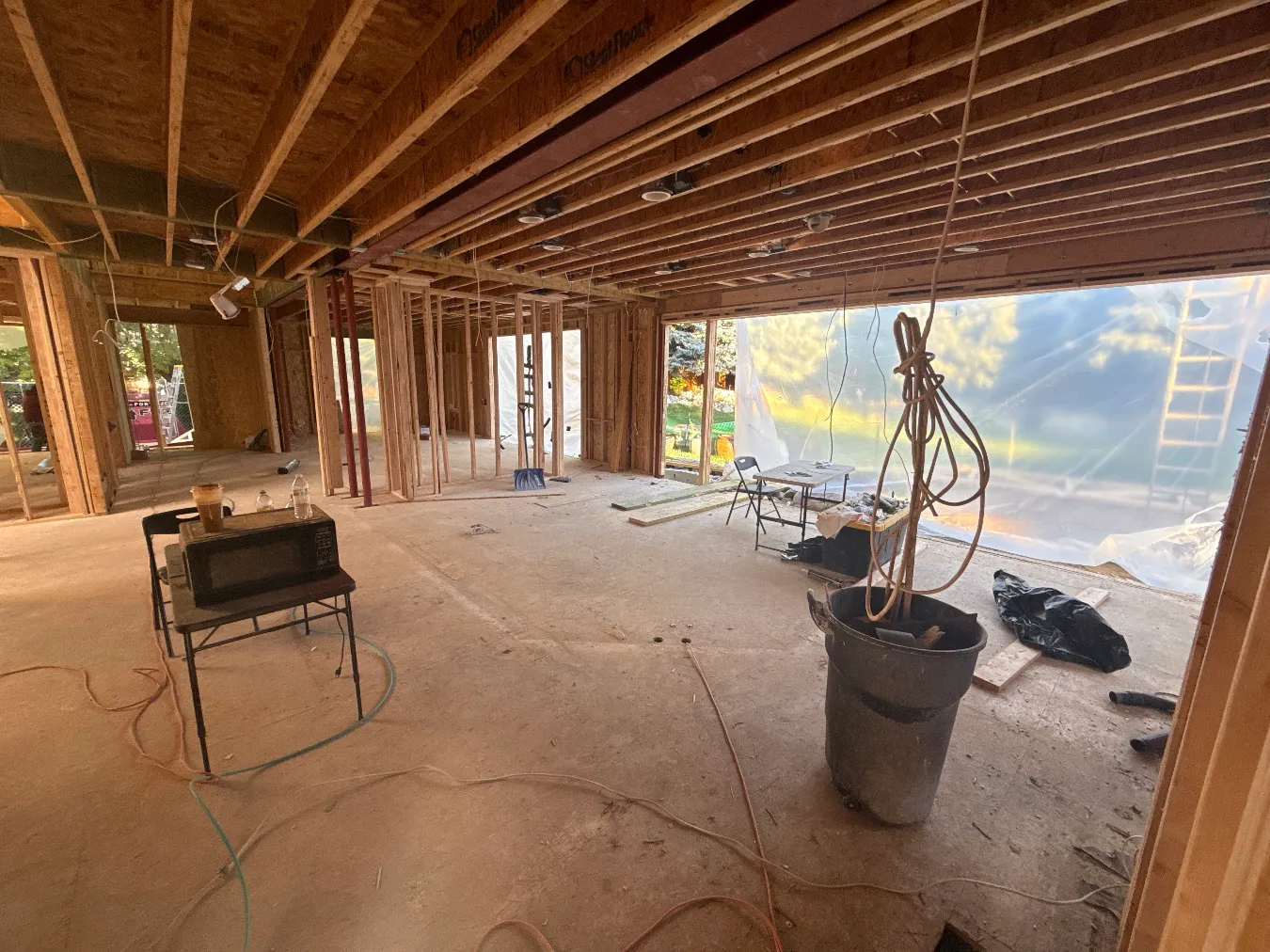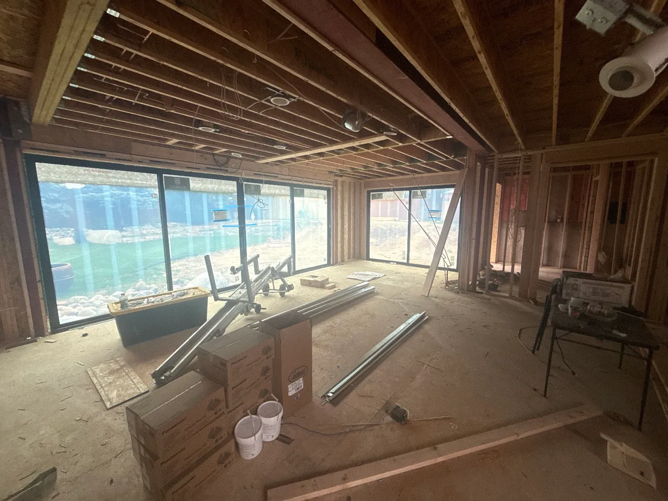 The framers installed the steel beams and got all the rough openings for windows ready. We are continuing with our demo and reframing. We also worked with our structural engineer to confirm a new plan for a flush beam in the second floor.