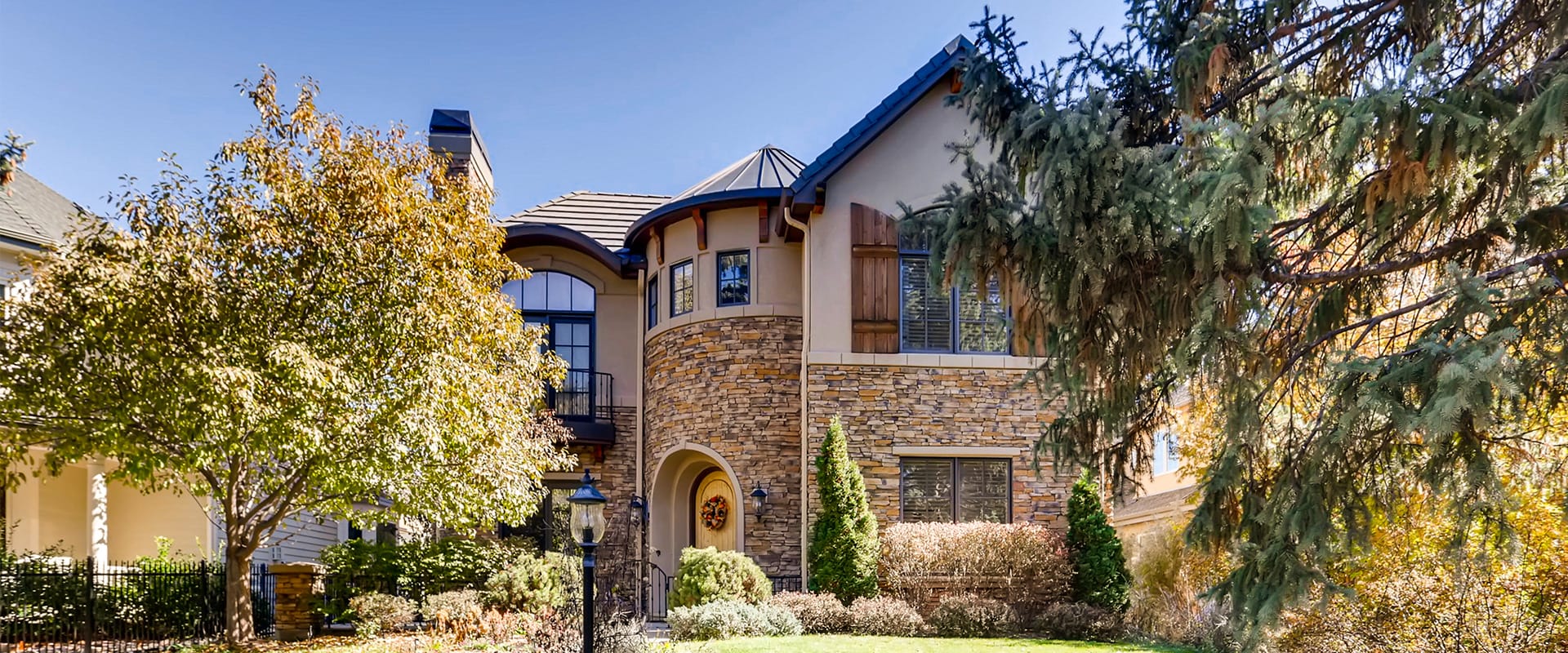 With a tower entry and wood exterior shutters, this home is replete with rustic, storybook charm.